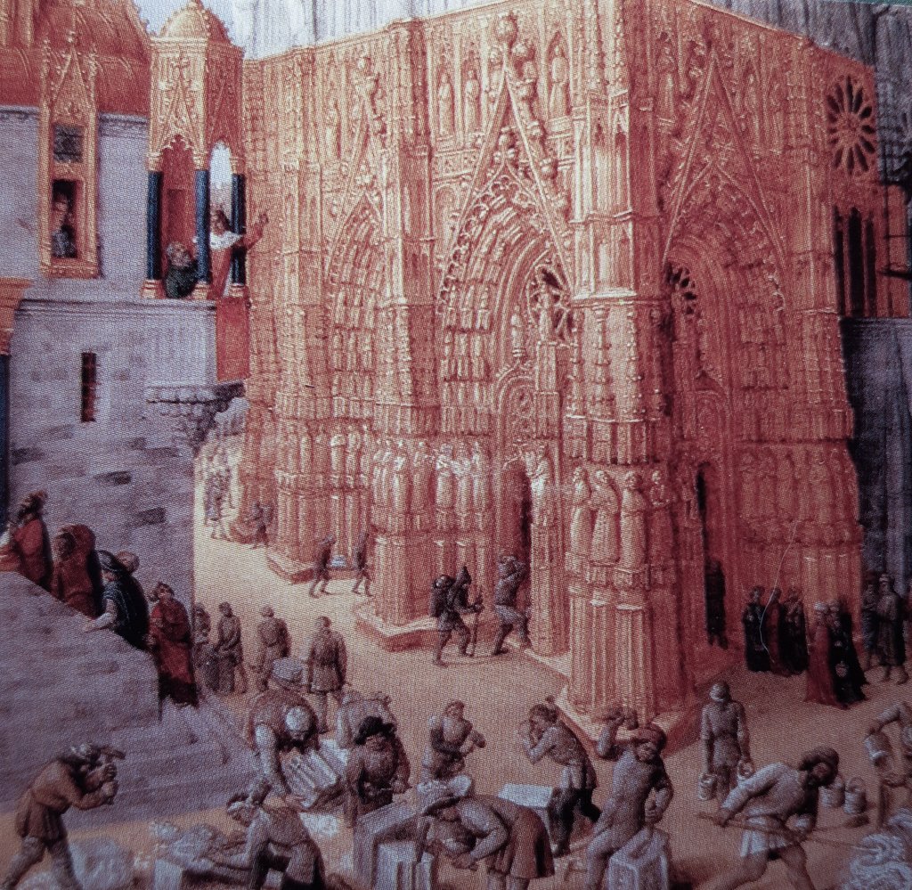 Od roku 1000 kościołóy i klasztory budowano w całej Europie Zachodniej, a wszędzie tam, gdzie budowano duże i potężne katedry, budowniczowie tworzyli także stowarzyszenia rzemieślnicze. Te tak zwane chaty budowlane były społecznościami ściśle zhierarchizowanymi. Na dole byli zwykli kamieniarze (ang. mason), z których niektórzy pracowali na ogromnych blokach kamiennych. Po ukończeniu praktyki jako mason, pozwolono im produkować żebra sklepienia i ozdobną biżuterię na podstawie określonych modeli. Kolejny wyższy poziom zajęli rzeźbiarze figur, którzy stworzyli posągi na podstawie modeli biblijnych. Kierownikiem robót budowlanych był majster. Posiadał tajniki huty, wiedzę rzemieślniczą, techniczną, matematyczną i projektową, które były niezbędne do budowy katedry.