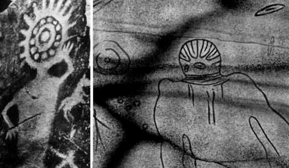 Duże oczy i brakujące kończyny stworzeń z pewnością przypominałyby przybyszów z kosmosu. Stwierdzono, że te obrazy mają 7500 lat.