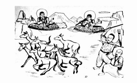Malowidło naskalne pochodzi z Tassili na Saharze w Afryce Północnej. Datuje się je na 6000 lat p.n.e.