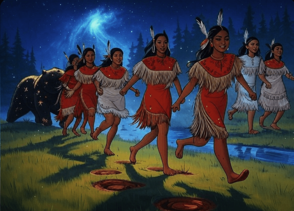 OPOWIEŚĆ O SIEDMIU SIOSTRACH (mit indiański): W mitologii indiańskiej opowieść o siedmiu siostrach mówi o sióstrach, które zostały przekształcone w gwiazdy przez Wielkiego Ducha, aby ocalić je przed wielkim niedźwiedziem.