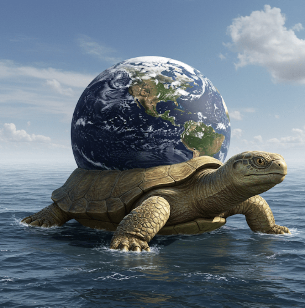 MIT O KOSMICZNYM ŻÓŁWIU: W hinduskiej mitologii opowieść o kosmicznym żółwiu(Kurma) opowiada, że Ziemia spoczywa na grzbiecie ogromnego żółwia pływającego na wodach oceanu.