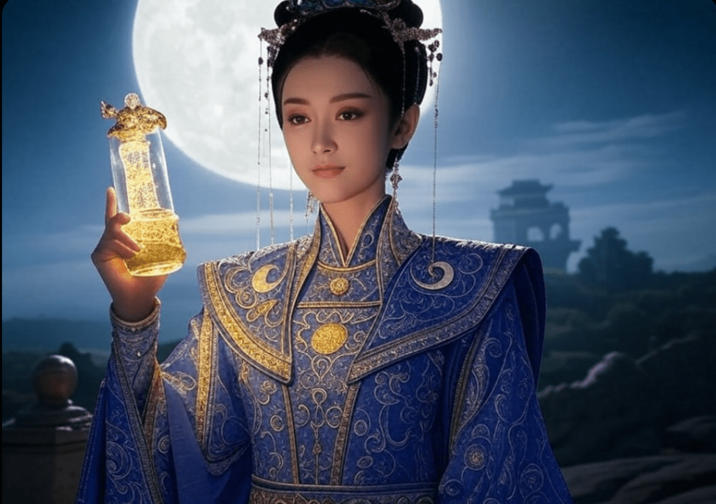 CHANG’E I HOU YI (chińska mitologia): Jedna z najbardziej znanych chińskich legend opowiada o Chang’e, pięknej bogini Księżyca, która wypija eliksir nieśmiertelności. Aby ocalić eliksir przed złym cesarzem, Chang’e ucieka na Księżyc, gdzie mieszka do dziś. Legenda mówi, że co roku, w dniu chińskiego święta księżycowego, ludzie składają ofiary Chang’e.