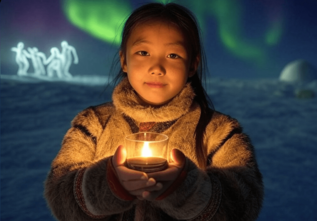 LEGENDY INUITÓW: W kulturze Inuitów zorza polarna była uważana za duchowe zjawisko, które miało różne znaczenia i wpływało na życie ludzi. Istnieją liczne opowieści o duchach, zwierzętach i bohaterach, którzy mieli związki ze zorzą polarną i jej magią.
