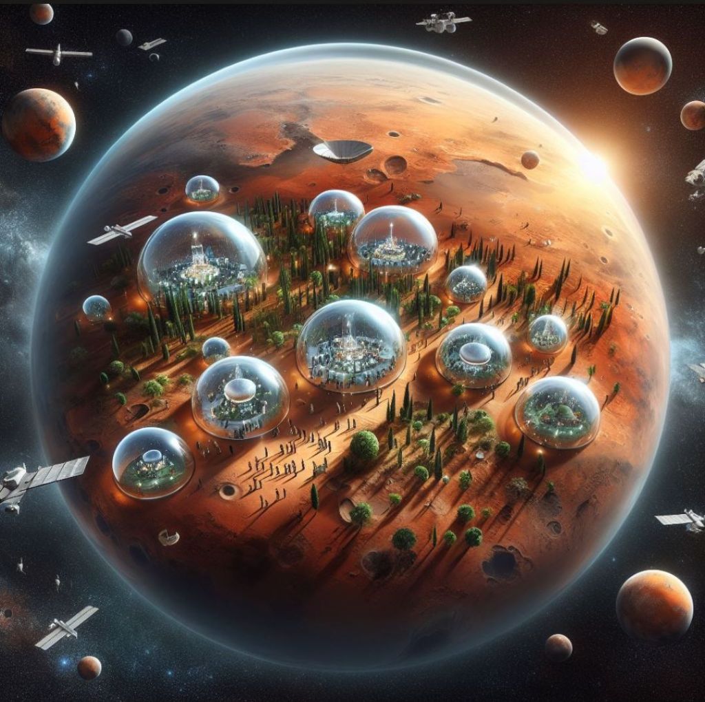 Istnieją plany i koncepcje dotyczące osadnictwa ludzkiego na Marsie w przyszłości. Kilka organizacji, w tym NASA i SpaceX, prowadzi badania nad tym, jak ludzie mogliby zamieszkać na Marsie. Planują one wysłanie misji załogowych na Marsa w celu zbadania możliwości kolonizacji oraz wypracowania technologii niezbędnych do utrzymania ludzkiego życia na tej planecie. Pomimo wyzwań technicznych i logistycznych związanych z podróżą i przebywaniem na Marsie, wizja osadnictwa ludzkiego na tej planecie nadal inspiruje naukowców i entuzjastów kosmosu.