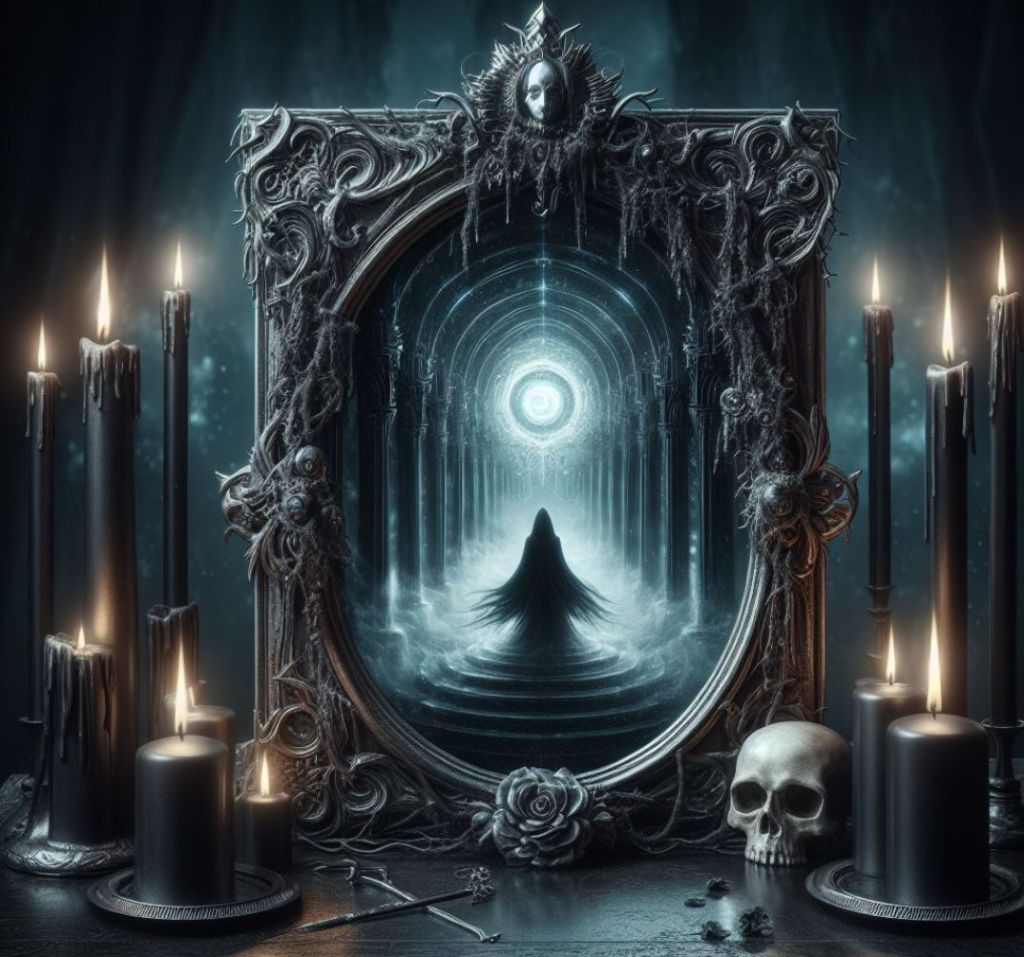 W niektórych kulturach istnieją przekonania lub legendy głoszące, że lustra mogą być bramami do zaświatów lub innych wymiarów. Według tych wierzeń lustra mogą być miejscem, przez które duchy lub istoty nadprzyrodzone przenikają między światem żywych a światem zmarłych. Ta koncepcja dodaje lustrom element tajemniczości i potencjalnego niebezpieczeństwa.