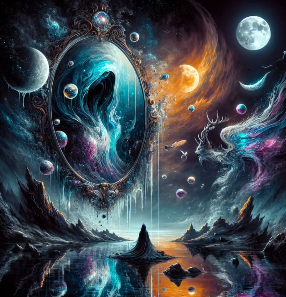 Teoria wieloświata: Jest to koncepcja fizyczna, która zakłada, że istnieje wiele równoległych wszechświatów, które mogą być podobne lub różne od naszego. Niektórzy naukowcy spekulują, że lustra mogą być oknami do tych wszechświatów, które mogą mieć inne prawa fizyki, historię lub życie.