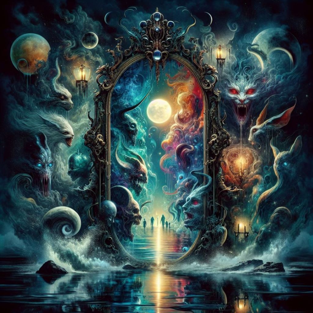Istnieje wiele wersji legendy o lustrze jako bramie do innego świata. Jedna z popularnych opowieści mówi o tajemniczym lustrze, które jest postrzegane jako portal prowadzący do innej rzeczywistości lub zaświatów.