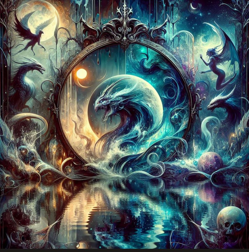 W odległej krainie istniało tajemnicze lustro, które według legendy miało niezwykłą moc. Nie tylko odzwierciedlało ono obrazy rzeczywistości, ale także ukazywało wydarzenia, które już miały miejsce, jak i te, które dopiero nadejdą. Mieszkańcy okolicznych wsi wierzyli, że lustro to jest bramą do nieznanych krain, gdzie przeszłość i przyszłość splatają się w nieskończonym tańcu czasu. Wierzenia Egipcjan o zaświatach i lustrach są bardzo złożone i fascynujące. Egipcjanie uważali, że ludzka dusza składa się z dziewięciu części, które musiały być zintegrowane i chronione, aby zapewnić życie po śmierci .
