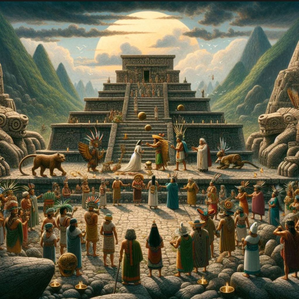 Sztuka i architektura: Majowie słynęli z wyrafinowanej sztuki i architektury, w tym z monumentalnych piramid, pałaców i świątyń zdobionych bogatymi reliefami i malowidłami. Aztekowie również budowali imponujące struktury, takie jak Wielka Piramida Tenochtitlán, ale ich styl był inny niż u Majów. Olmekowie pozostawili po sobie monumentalne rzeźby głów, które są jednymi z najbardziej charakterystycznych artefaktów tej kultury.