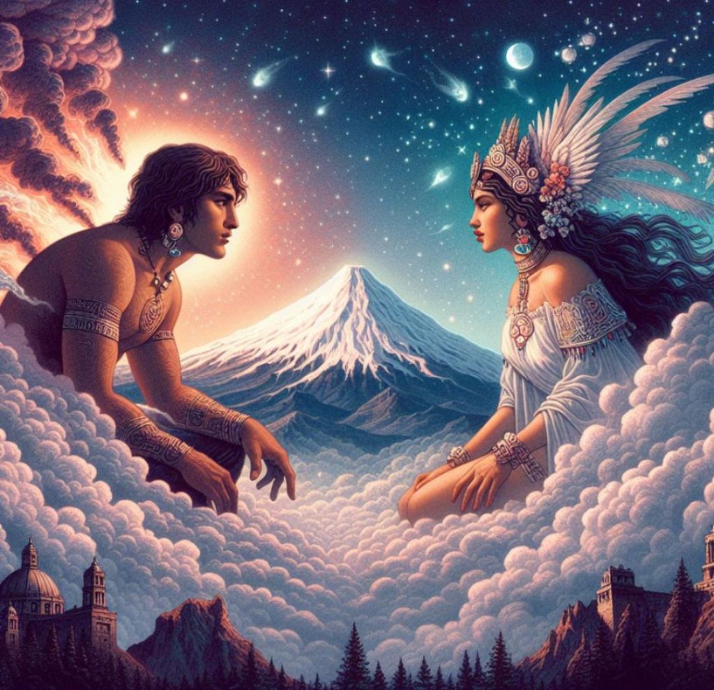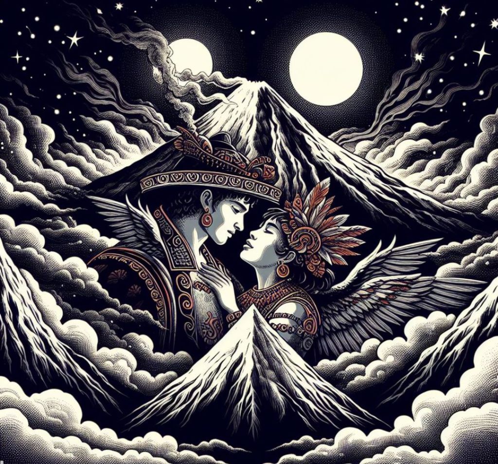 Popocatepetl był wojownikiem, a Iztaccihuatl piękną księżniczką. Ich miłość była zakazana przez ojca Iztaccihuatl.