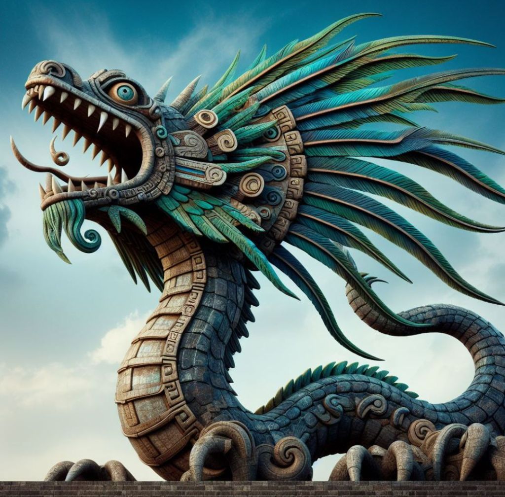 Quetzalcoatl to bóg węża pióra, uważany za jedno z najważniejszych bóstw w mitologii Azteków.