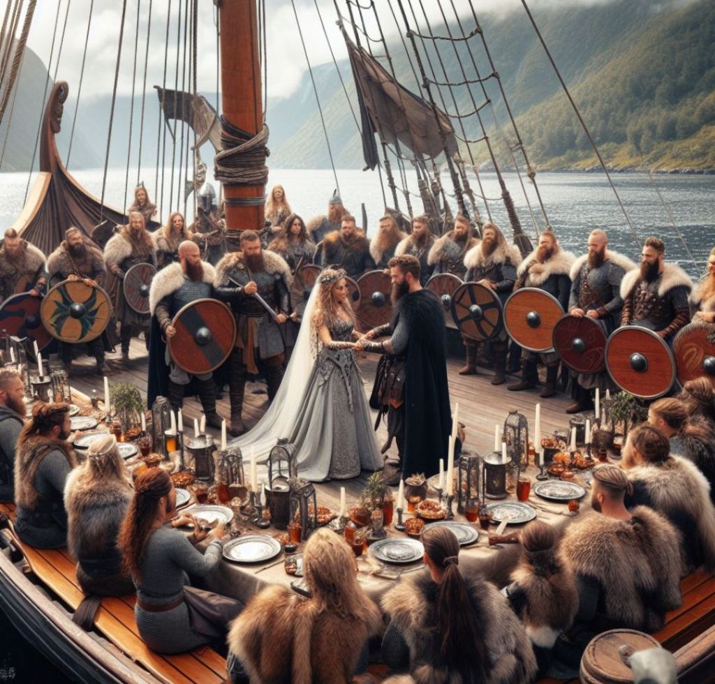 Ceremonia małżeńska mogła odbywać się na różnych miejscach, włączając w to łodzie. Wikingowie cenili sobie swoje łodzie jako symbole siły, wytrwałości i zdolności do podboju. Dlatego niektóre małżeństwa mogły być celebrowane na pokładach ich drakkarów, szczególnie jeśli para miała silne związki z morzem lub żeglugą.