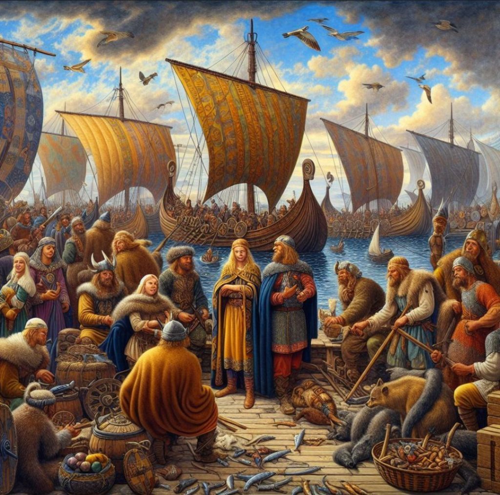 Wikingowie i handel: Wikingowie byli również zręcznymi kupcami, którzy handlowali towarami takimi jak futra, kości słoniowej i niewolnicy, docierając ze swoimi towarami aż do Bliskiego Wschodu.