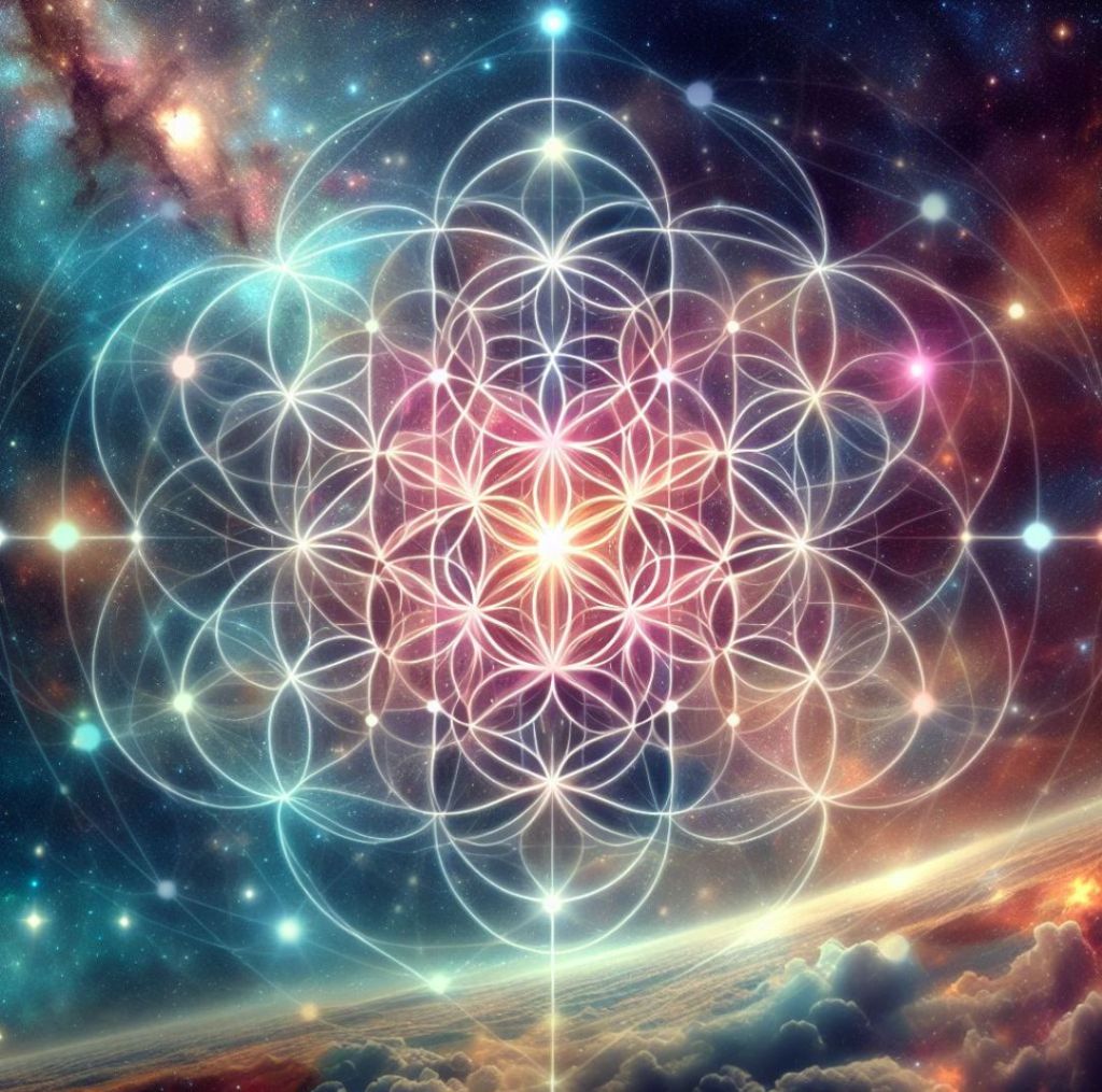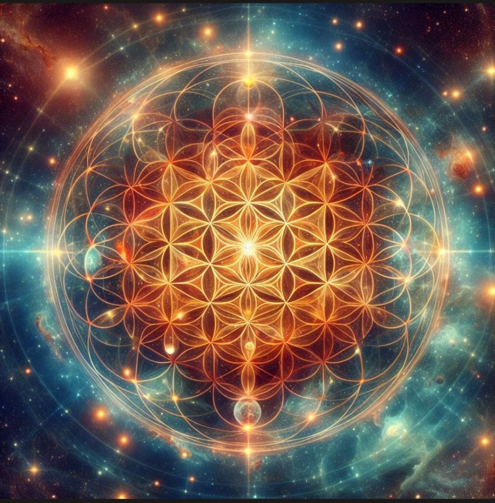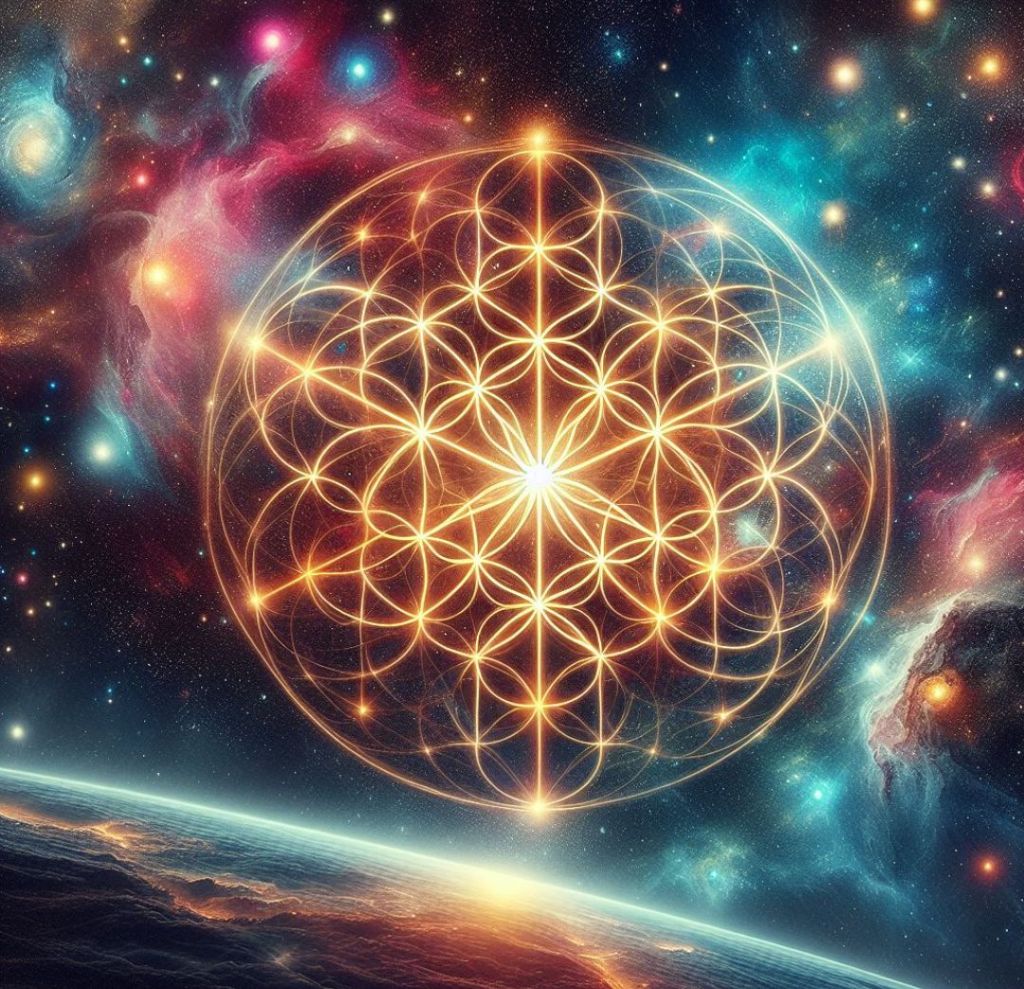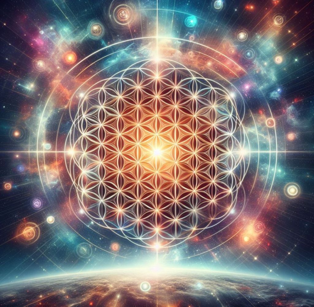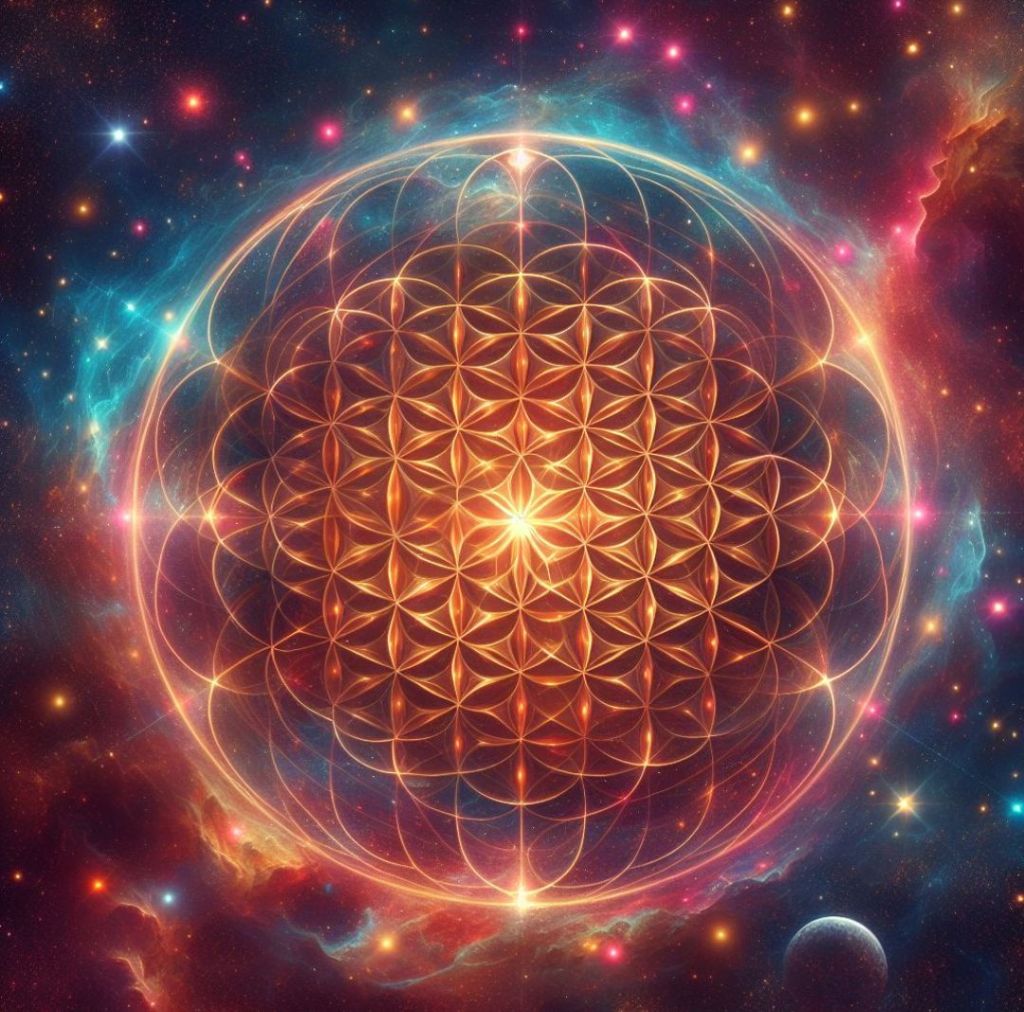 Kwiat Życia w świętej geometrii odzwierciedla struktury przestrzeni i czasu, z interpretacjami łączącymi go z fizyką kwantową poprzez powtarzające się wzory wszechświata.