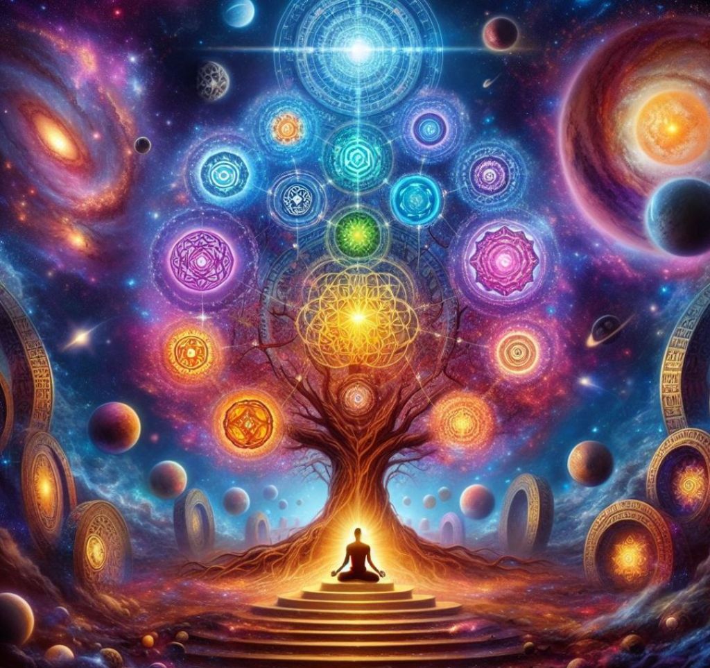 Symbolizuje jedność wszystkich form życia w nierozerwalnej sieci wszechświata oraz bezpośredni wyraz boskiej woli i harmonii, przekraczając granice kulturowe i religijne jako most między światem fizycznym a duchowymi wymiarami.
