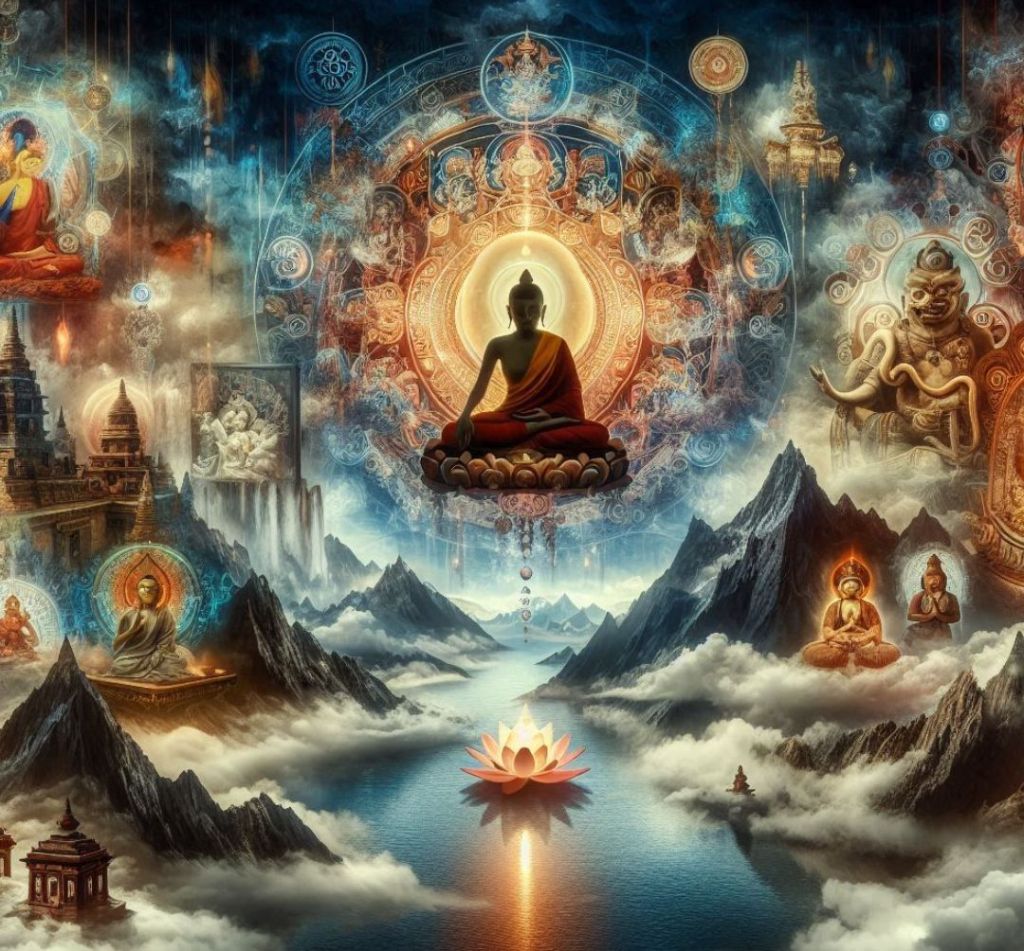 W tradycji buddyjskiej,a zwłaszcza w tekstach Kalachakry („Koła Czasu”), Shambhala jest przedstawiana jako ukryta kraina pośród niedostępnych gór. To nie tyle fizyczne miejsce, ile raczej stan świadomości – symbol idealnego społeczeństwa, rządzonego przez mądrość, współczucie i sprawiedliwość. Jest interpretowana dwojako: jako fizyczna oaza, dostępna tylko dla tych, których serca są czyste, oraz jako wewnętrzny stan duchowego przebudzenia, który może odkryć w sobie każdy praktykujący.