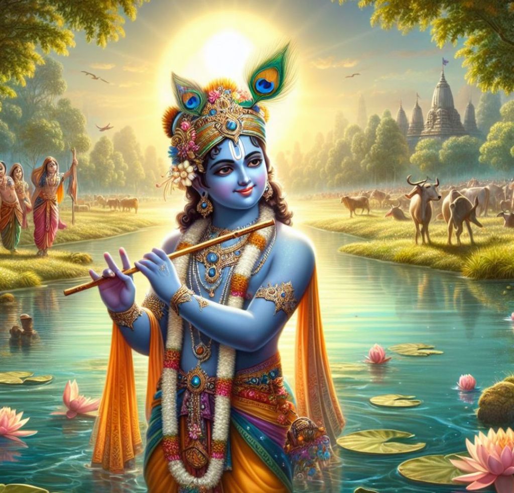 Jego boskie czyny, takie jak pokonanie wielu demonów, miały miejsce w jej wodach. Rzeka ta była również świadkiem słynnego tańca Raas Leela, w którym Kryszna tańczył z Radhą i gopis. Wody Jamuny są uważane za święte i mają moc oczyszczania z grzechów, podobnie jak Ganges. Legenda o pokonaniu demona Kaliya przez Krysznę jest jedną z najbardziej znanych opowieści z hinduistycznej mitologii, związanych z rzeką Jamuną.