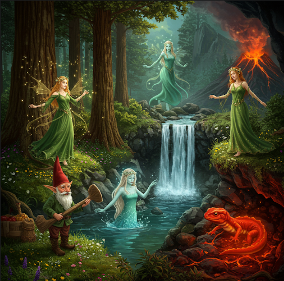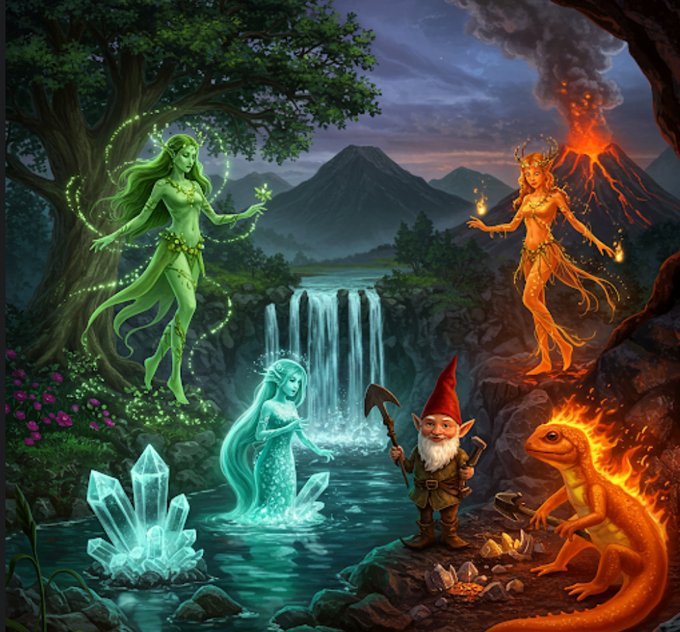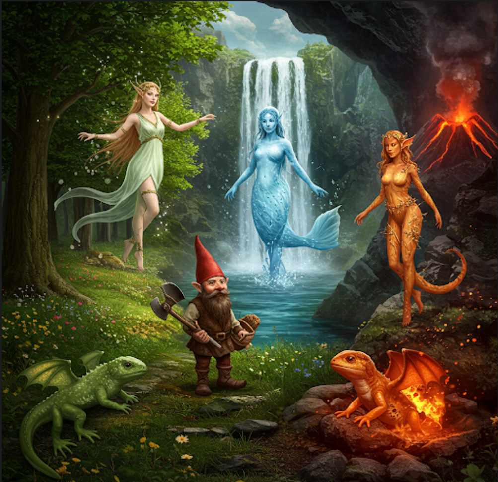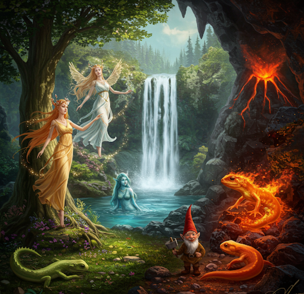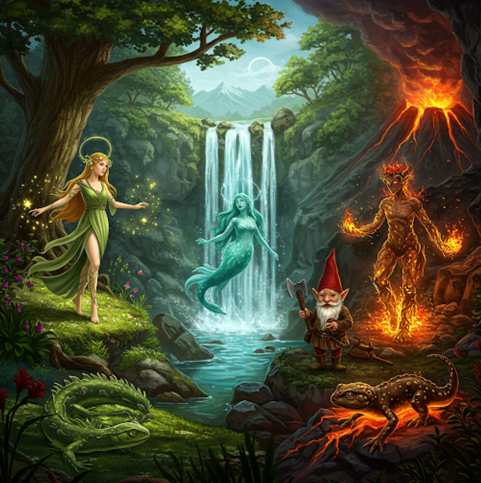 DUCHY ELEMENTARNE, znane również jako żywiołaki, mają swoje korzenie w mitologii, religii i filozofii. Koncepcja tych istot została szczególnie rozwinięta przez Paracelsusa, szwajcarskiego alchemika i lekarza z XVI wieku. Paracelsus zidentyfikował cztery kategorie żywiołaków: gnomów (ziemia), ondyn (woda), sylfów (powietrze) i salamander (ogień), które odpowiadają czterem klasycznym żywiołom starożytności: ziemi, wodzie, powietrzu i ogniu.