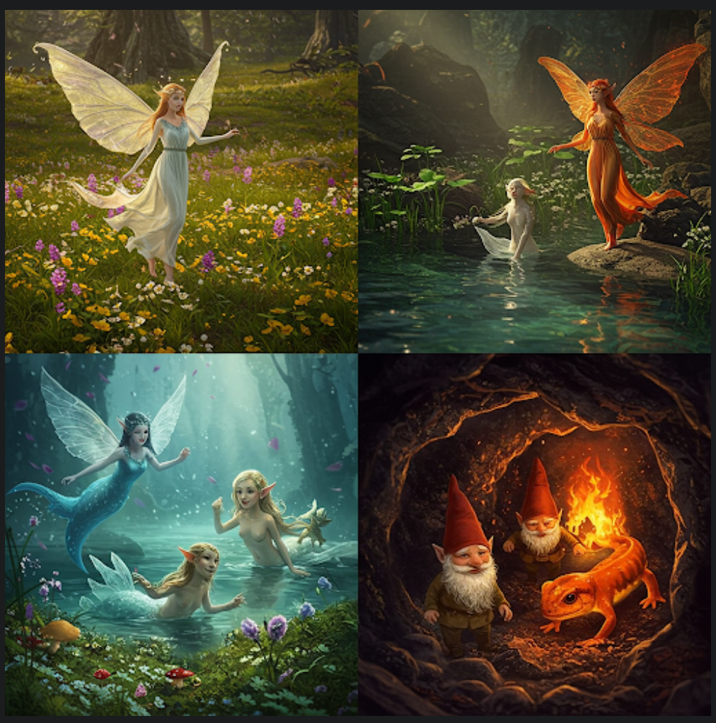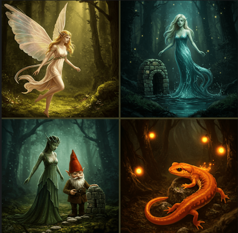 SYLFY (POWIETRZE): Powiązane z powietrzem, sylfy są istotami eterycznymi, które symbolizują intelekt, komunikację, wolność i ruch. Są niewidoczne dla ludzkiego oka i poruszają się z ogromną szybkością.