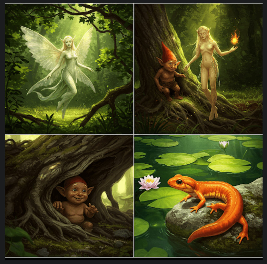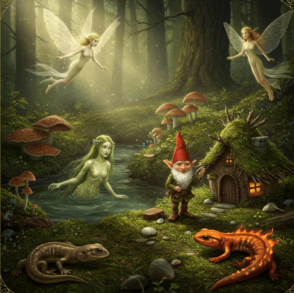 CHARAKTERYSTYKA: Gnomy są przedstawiane jako małe, często brodate istoty, które mieszkają w ziemi, w jaskiniach, górach czy lasach. Są strażnikami skarbów ziemi, znawcami minerałów i kamieni oraz opiekunami roślinności.