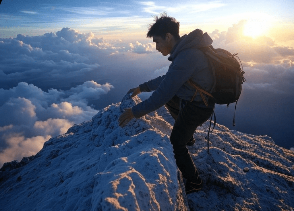 Wspinaczka na szczyt może reprezentować nie tylko osobiste dążenie do doskonałości czy oświecenia, ale także pokonywanie wewnętrznych przeszkód, wysiłek i transformację.