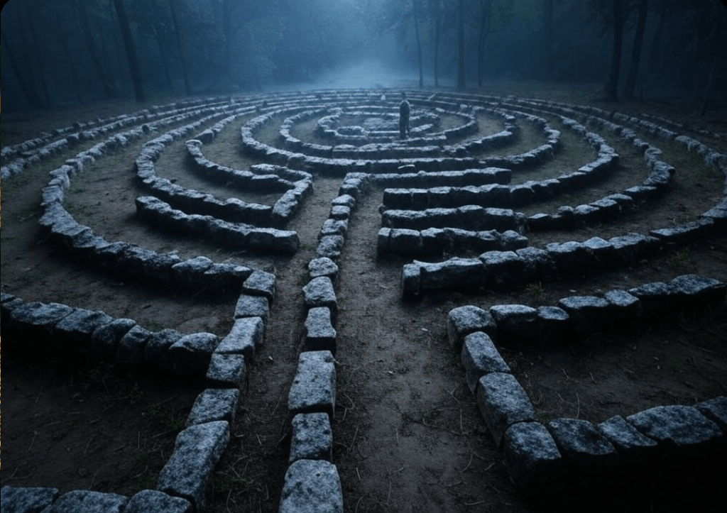 Labirynt jako symbol transformacji: Przejście przez labirynt może symbolizować proces przemiany i odrodzenia. Wchodząc do labiryntu, osoba podejmuje duchową lub emocjonalną podróż, z której wychodzi odmieniona i mądrzejsza..