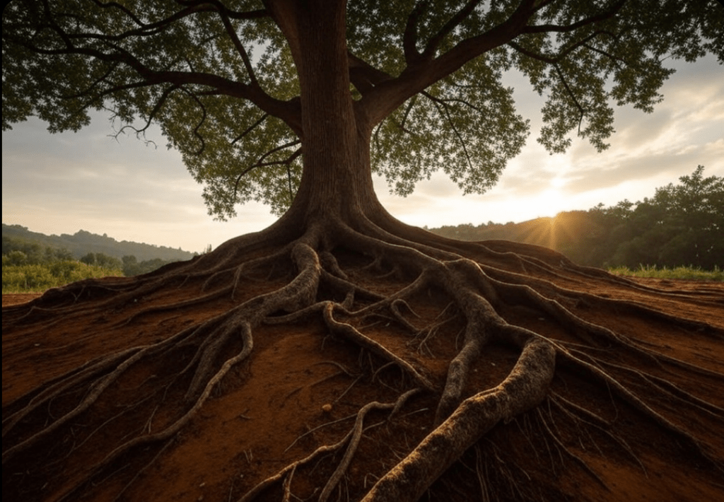 - Korzenie drzewa, które sięgają głęboko w ziemię, symbolizują przeszłość, fundamenty, z których wywodzimy się, nasze pochodzenie, rodzinę i dziedzictwo. To, co nas ukształtowało i co nas łączy z ziemią, jest kluczowe dla naszej tożsamości.