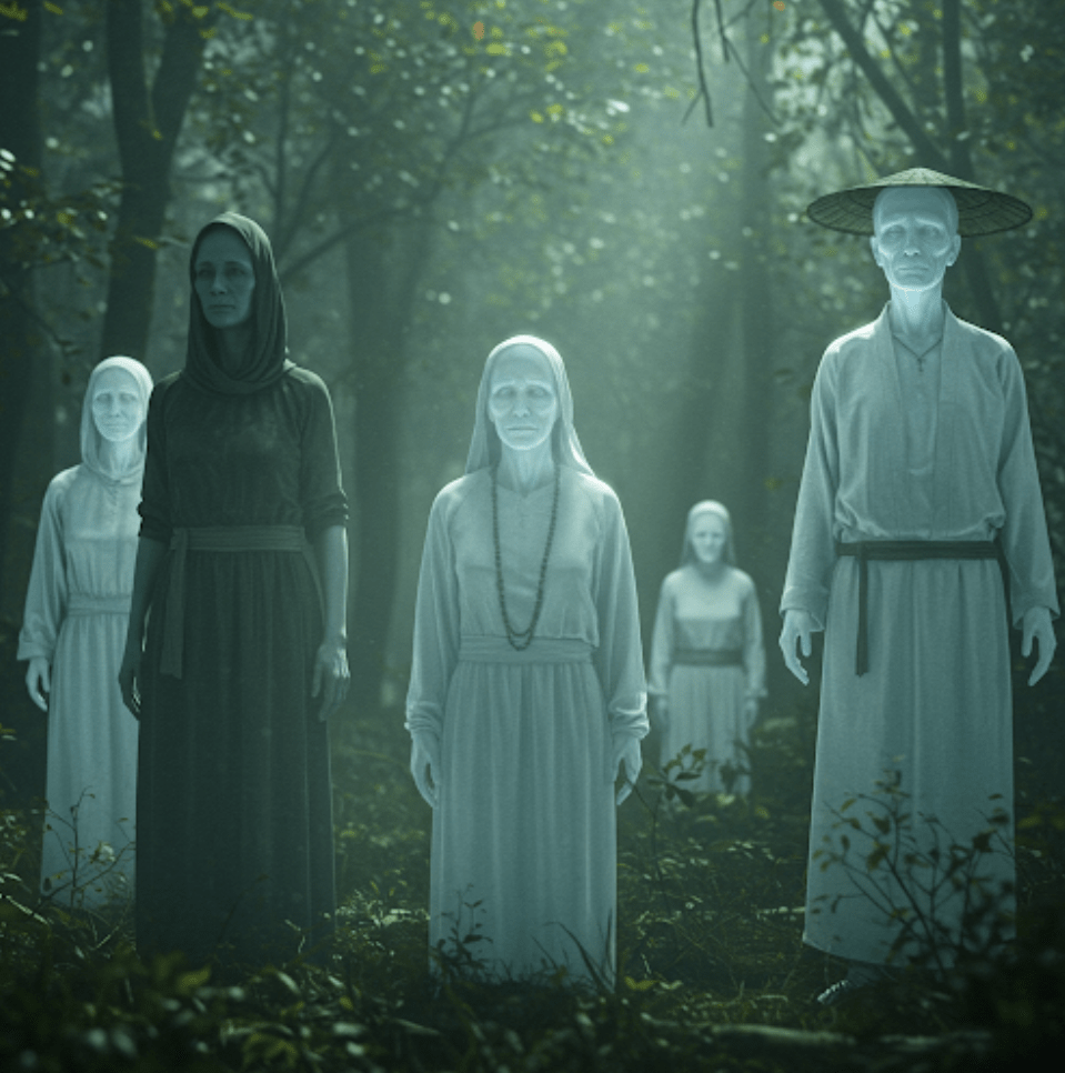 „Między pamięcią a cieniem, w miejscu gdzie historia splata się z tajemnicą, rodzi się opowieść o duchach przodków. To nie tylko zapis doświadczeń, lecz także próba zrozumienia głosów, które przemawiają z głębi czasu. W 🧬bursztynowym świetle dziedzictwa, przez zasłonę ⚫czarnego echa niewidzialności, i pod 🟣fioletowym spojrzeniem interpretacji, odkrywamy przestrzeń, w której przeszłość nie umiera — ona szeptem prowadzi dalej.”