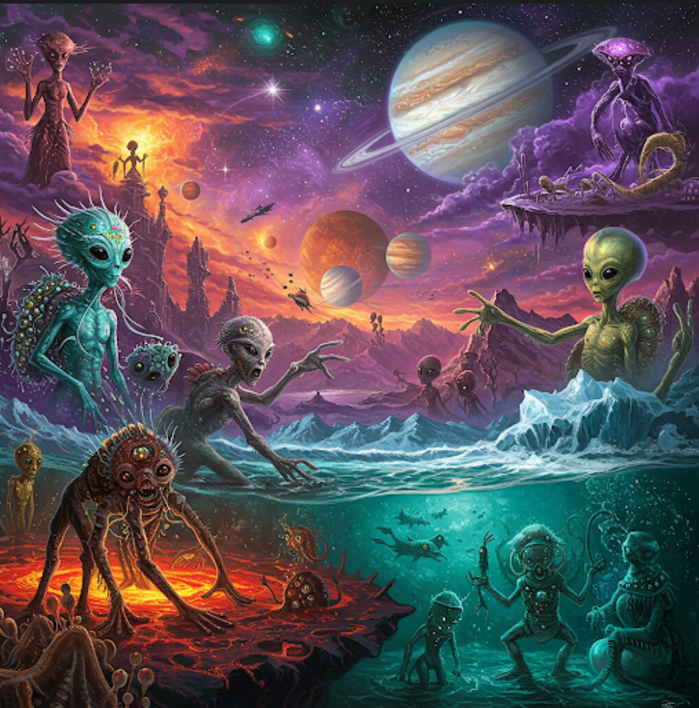 W różnych teoriach spiskowych pojawiają się twierdzenia o życiu na różnych planetach, mimo że nie ma naukowych dowodów na ich prawdziwość.