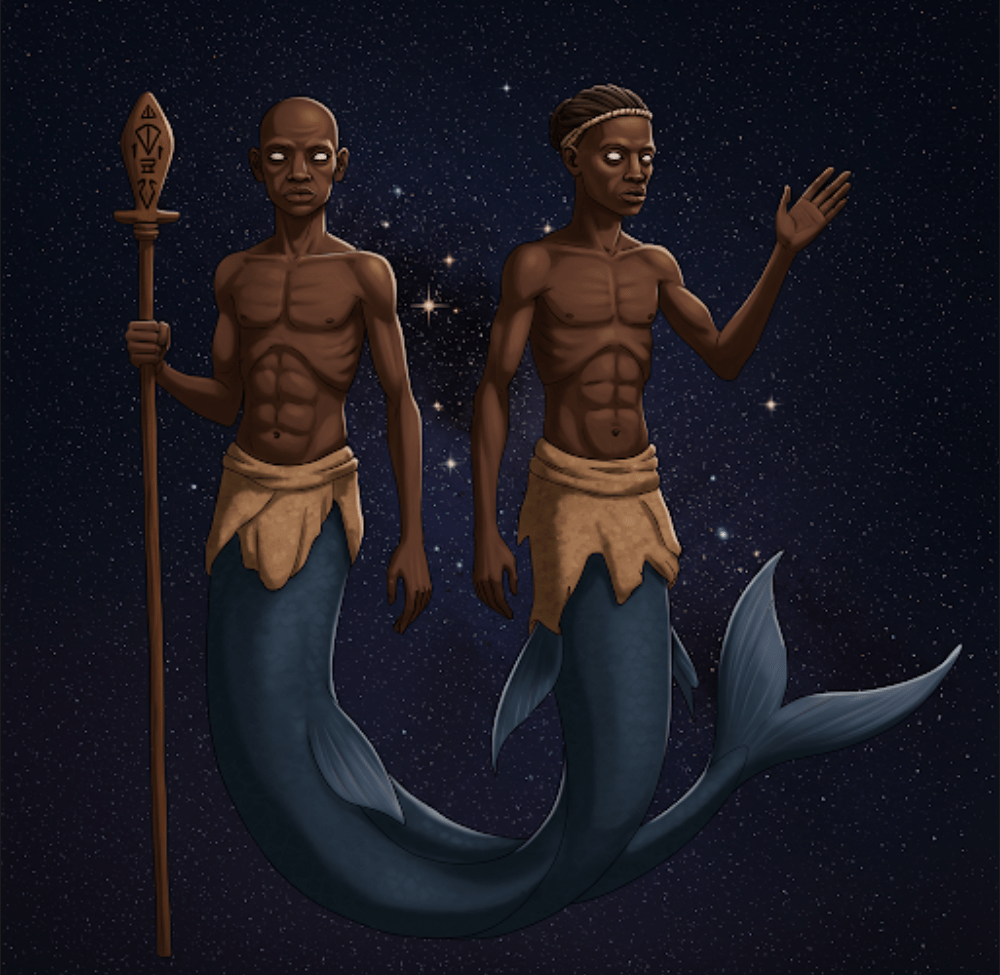 Dawno temu, w odległym systemie gwiezdnym Syriusza, narodziły się niezwykłe istoty zwane Nommo. Były to bliźniacze stworzenia, pół-ludzkie i pół-rybie, obdarzone wielką mądrością i mocą. Stwórca wszechświata, Amma, postanowił wysłać Nommo na Ziemię, aby nauczali ludzi i przynieśli im wiedzę.
