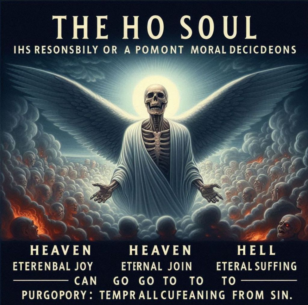 W chrześcijaństwie dusza jest nieśmiertelną,stworzoną przez Boga częścią człowieka, która przetrwa śmierć ciała i zostanie osądzona. Może dostąpić zbawienia (niebo), potępienia (piekło) lub oczyszczenia (czyściec). Kluczową rolę odgrywa tu łaska Boża, dostępna przez sakramenty i wiarę. Jak pisał św. Augustyn: „Niespokojne jest serce nasze, dopóki w Tobie [Boże] nie spocznie”[^3], co oddaje ideę, że dusza ludzka tęskni za powrotem do swojego Stwórcy.