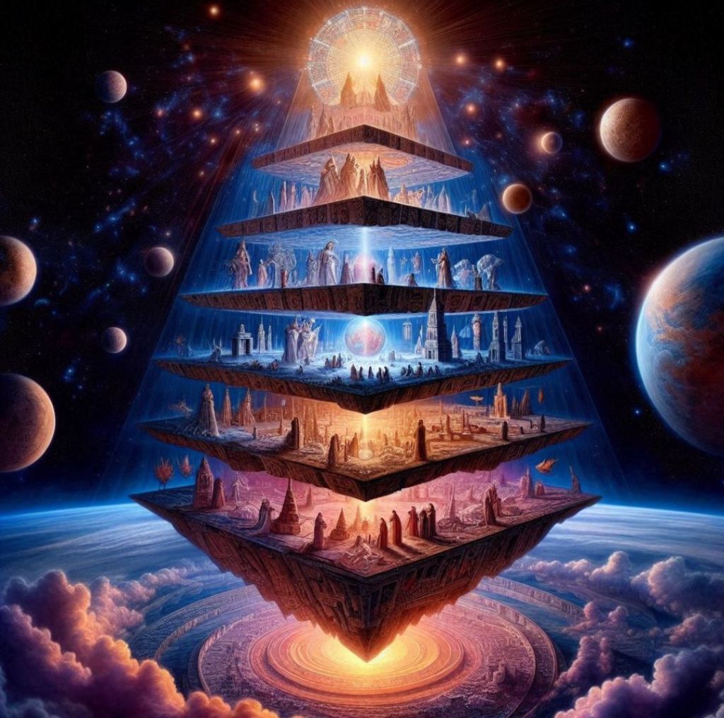 Ta teoria sugeruje, że różne wymiary przestrzeni istnieją równolegle, podobnie jak różne poziomy siedmiu niebios i ziem.