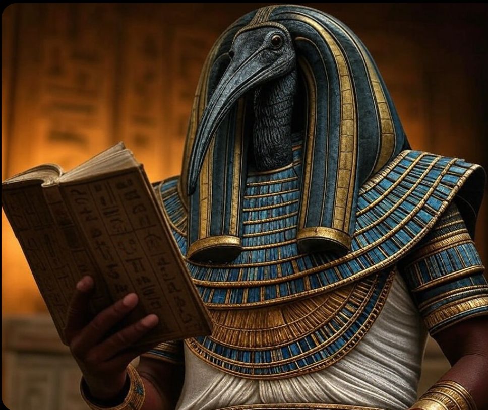 🌑Teksty hermetyczne, takie jak „Tablica Szmaragdowa”, często odwołują się do nauk przypisywanych Thothowi.