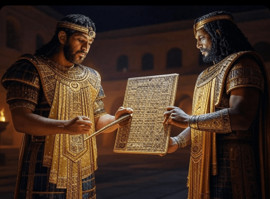 Nie znamy i raczej nigdy nie poznamy dokładnych zapisów z Tablic Przeznaczenia, bo nie były one pomyślane jako coś, co można ujawnić. Ich siła tkwiła w symbolice i wierze, że boska wola, raz zapisana, jest niezmienna i niedostępna dla ludzi.