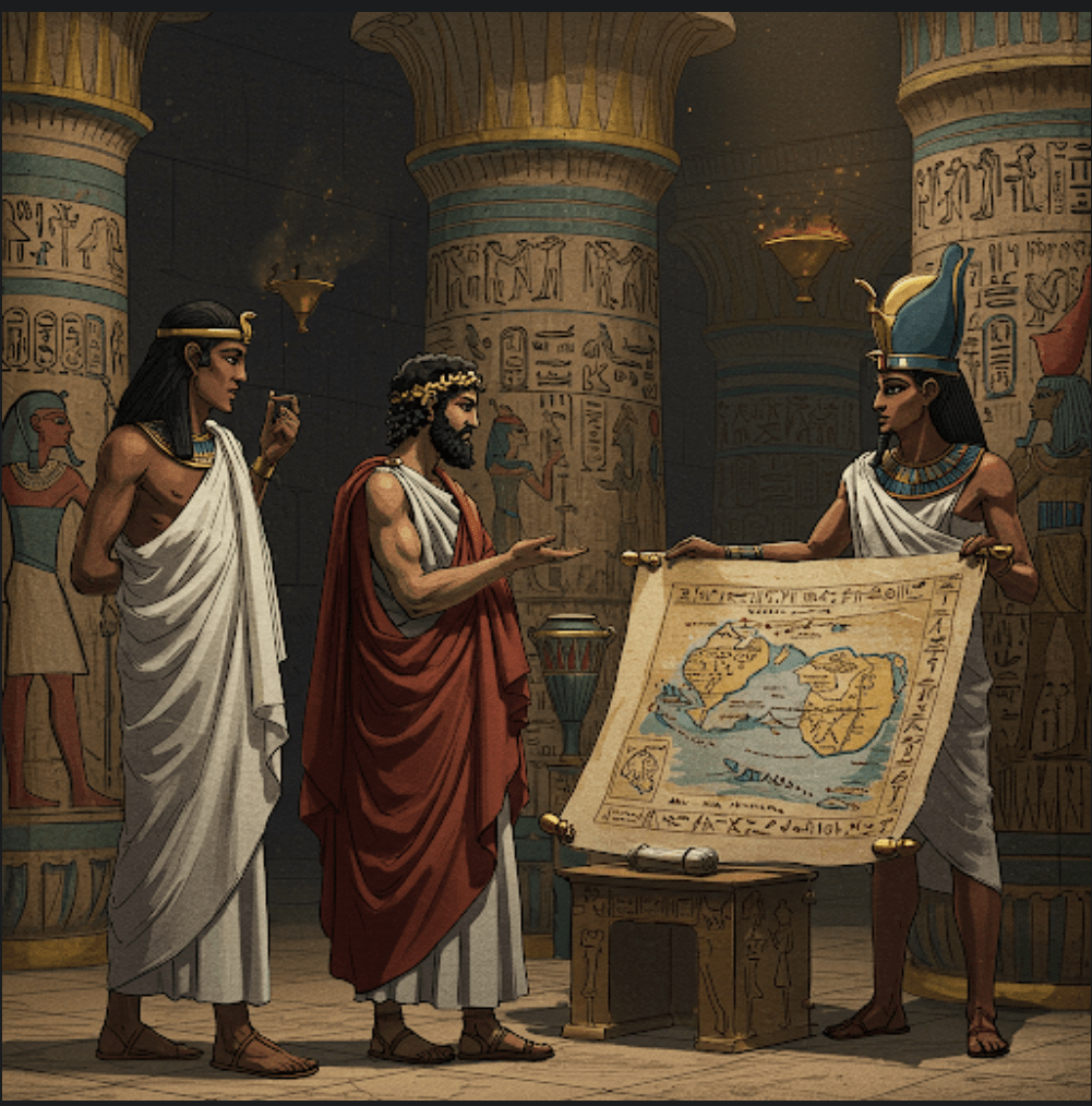 Źródłem wszystkich współczesnych opowieści jest grecki filozof Platon, który w dialogach „Timajos” i „Kritias” przedstawił niesamowitą historię. Kluczowe dla jej zrozumienia jest jednak pytanie: skąd sam Platon ją zaczerpnął? Odpowiedź prowadzi nas przez wody Morza Śródziemnego – od ateńskich portów, przez egipskie świątynie, aż do gabinetów antycznych mędrców. To opowieść o spotkaniu dwóch światów: greckiego geniuszu Solona i starożytnej mądrości egipskich kapłanów.
