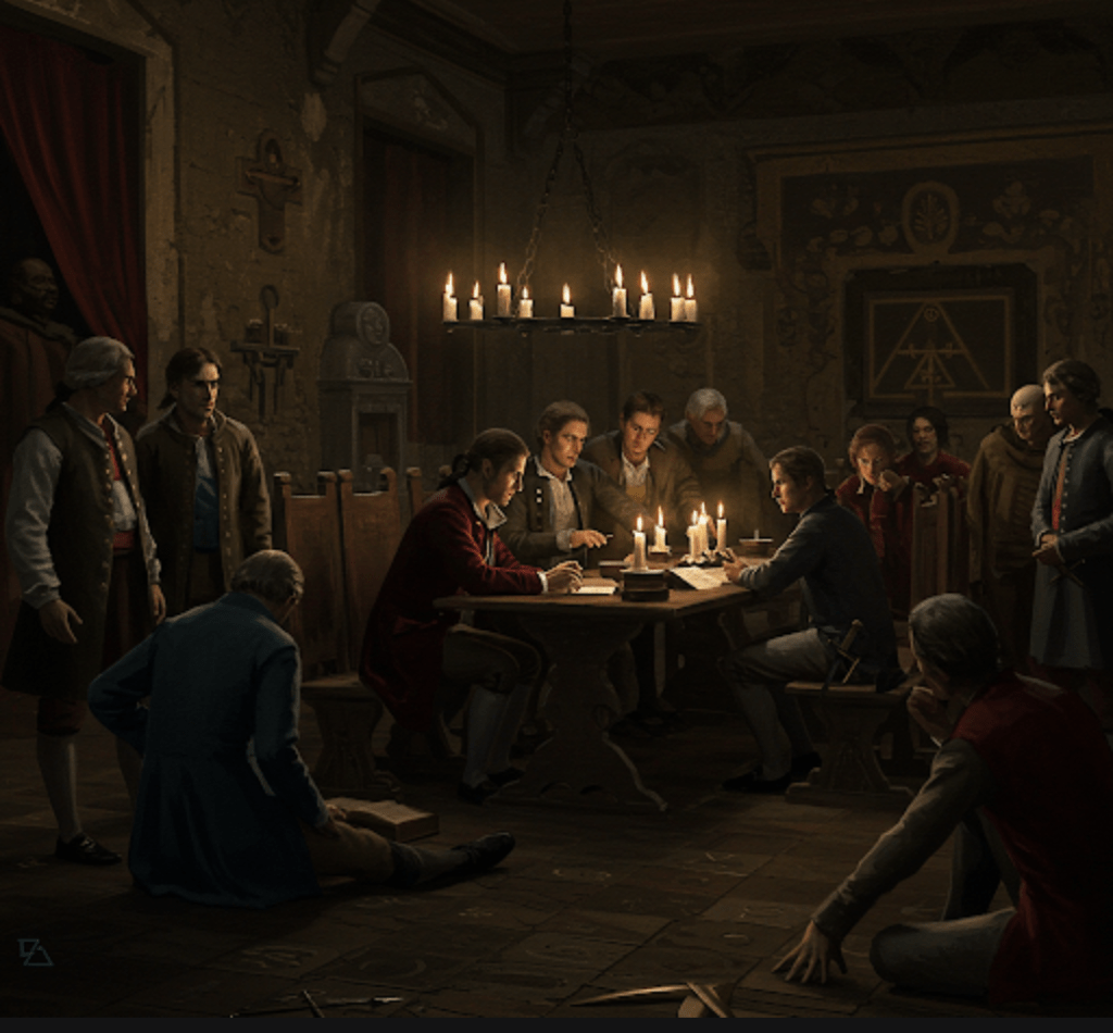 1 maja 1776 roku Weishaupt zakłada Zakon Iluminatów. Brzmi groźnie, prawda? Ale w rzeczywistości to bardziej klub dyskusyjny dla jajogłowych, którzy chcą zmieniać świat… bez mieczy i pochodni. Ich cele? Proste, ale ambitne:
