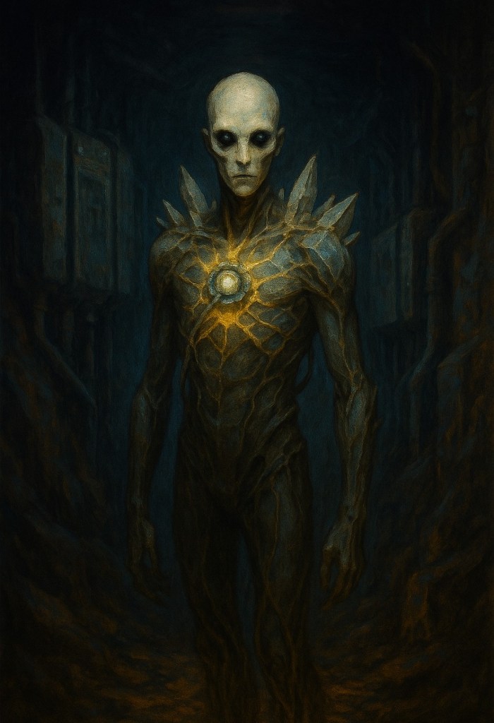 To oni są najbardziej„ludzcy” ze wszystkich… i przez to najbardziej niepokojący. Są pozostałością po dawnej, zaawansowanej ludzkiej cywilizacji, która nie zginęła, ale schroniła się. Gdy na powierzchni szalały kataklizmy, oni zeszli w gigantyczne, samowystarczalne schrony, które z czasem stały się ich światem. Ewoluowali w izolacji. Są bladzi, wysocy, ich oczy dostosowały się do półmroku. Ich technologia jest mieszaniną starożytnej nauki i czegoś… innego. Czasami porywają ludzi z powierzchni, by badać, by się krzyżować, by uzupełniać swój zubożały pulę genetyczną. Są jak upiorne echo was samych.