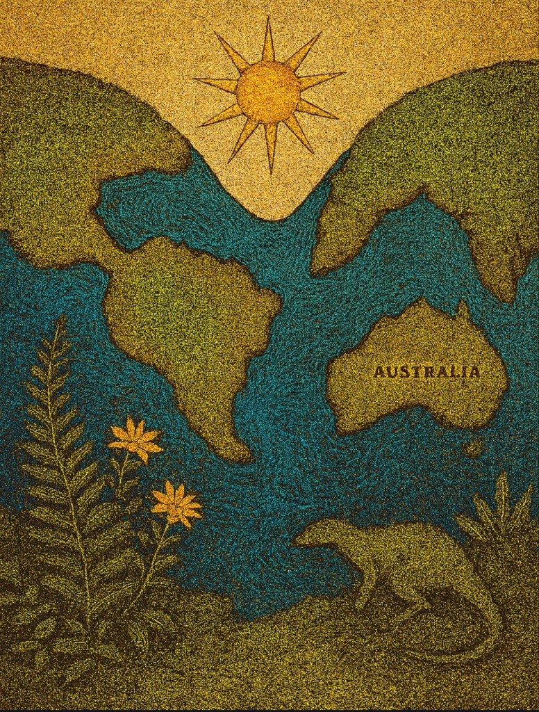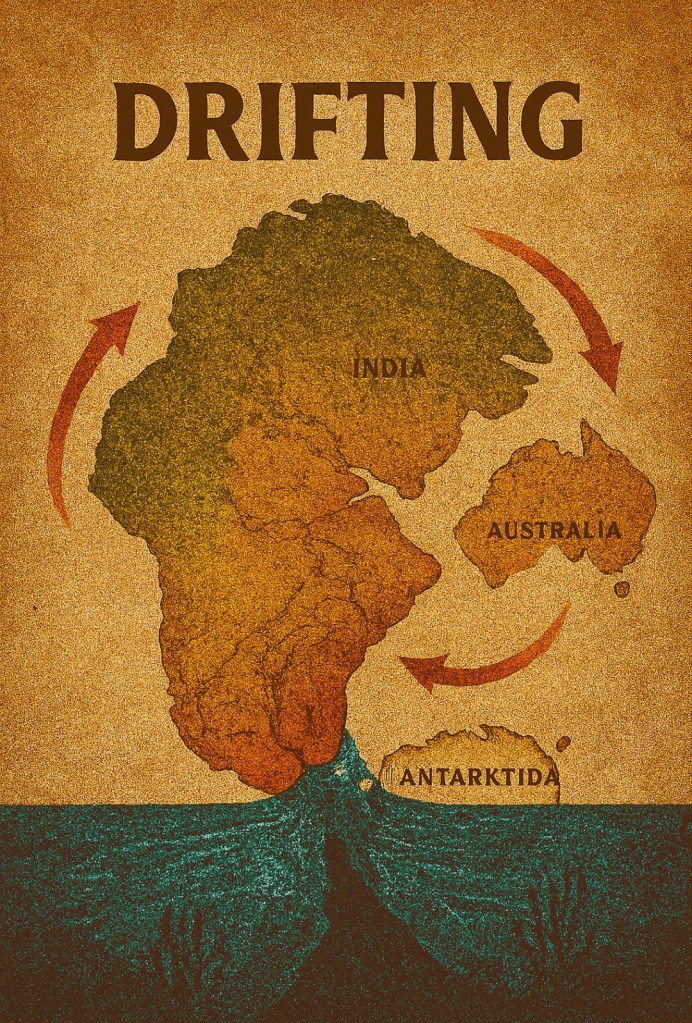 Fragmenty Pangei, niczym dryfujące tratwy na powierzchni gorącego, plastycznego płaszcza, zaczęły swoją wielką podróż. Indie, odłamane od Afryki, pomknęły na północ, by za 250 milionów lat wbić się w brzuch Azji i wypiętrzyć Himalaje. Australia dryfowała na wschód, izolując się na tyle, by stać się żywym laboratorium ewolucji. Antarktyda popłynęła na południe, by zakończyć bieg na biegunie i skuć się w lodową trumnę.