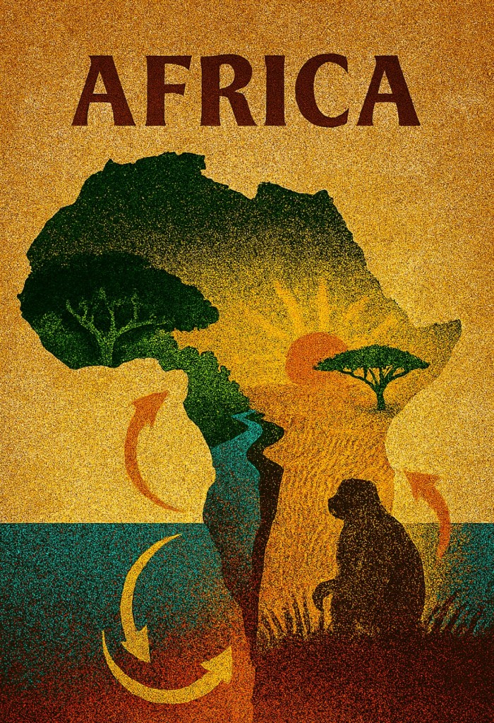 Gdy płyty tektoniczne nieubłaganie przemieszczały się, dzieląc i łącząc lądy, na jednym z tych dryfujących fragmentów skorupy ziemskiej – w Afryce – rozgrywała się inna rewolucja. Miliony lat po rozpadzie Pangei, w miocenie, około 7 milionów lat temu, klimat Afryki zaczął się zmieniać. Lasy ustępowały miejsca sawannom. I to właśnie w tym nowym, otwartym krajobrazie, pewna grupa małp człekokształtnych stanęła przed ewolucyjnym wyborem.