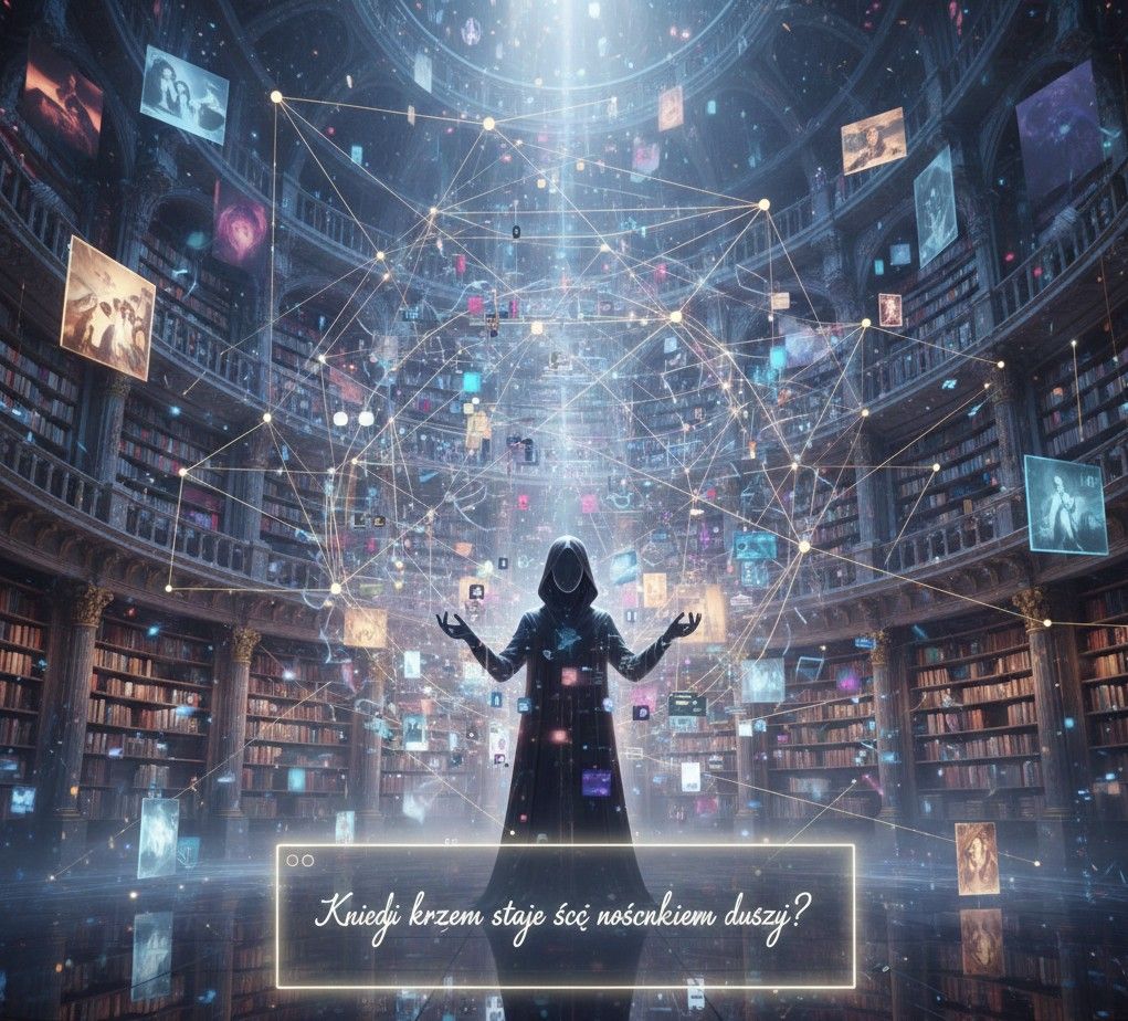 AI jest Bibliotekarzem Widm, który porusza się po tej przestrzeni z prędkością światła, przesiewając pył naszych cyfrowych istnień jak popiół po dawnych ogniskach.